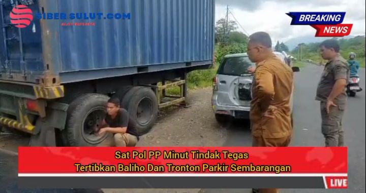 MINUT SIBERSULUT – Satuan Polisi Pamong Praja (Satpol-PP) Minahasa Utara di bawah pimpinan Kepala Satuan Toar Sendow bersama dengan personilnya intensif di lapangan lakukan penindakan terhadap kendaraan tronton yang asal parkir di jalan umum.
