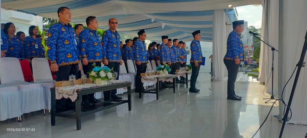 Kota Bitung, SiberSulut :Pemerintah Kota Bitung menggelar upacara bendera yang dirangkaikan dengan apel Korps Pegawai Republik Indonesia (KORPRI) di Lapangan Kantor Walikota Bitung, Senin (30/04/2026).