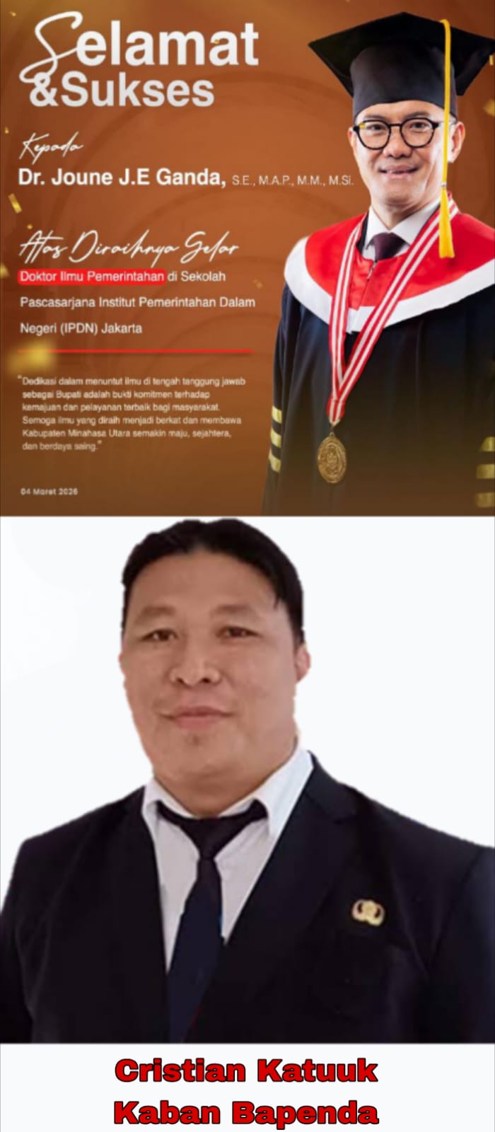 Bupati Joune Ganda Raih Gelar Doktor, Bapenda Minut Ucapkan Selamat dan Apresiasi Dedikasi
