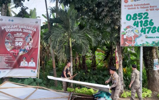Satpol PP Minahasa Utara Tindak Tegas Baliho Liar Dan Tronton Asal Parkir