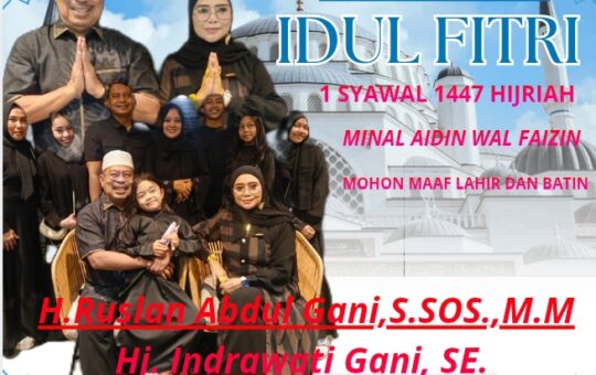 Sambut Idul Fitri 1447 Hijriah, Keluarga Haji Ruslan Abdul Gani Dan Haja Indrawati Gani Bersama Keluarga Berikan Ucapan Untuk MasyarakatÂ